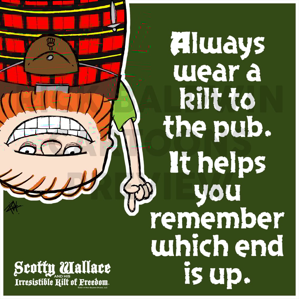 "Scotty Wallace and His Irresistible Kilt of Freedom" cartoon available for personal or business licensing.