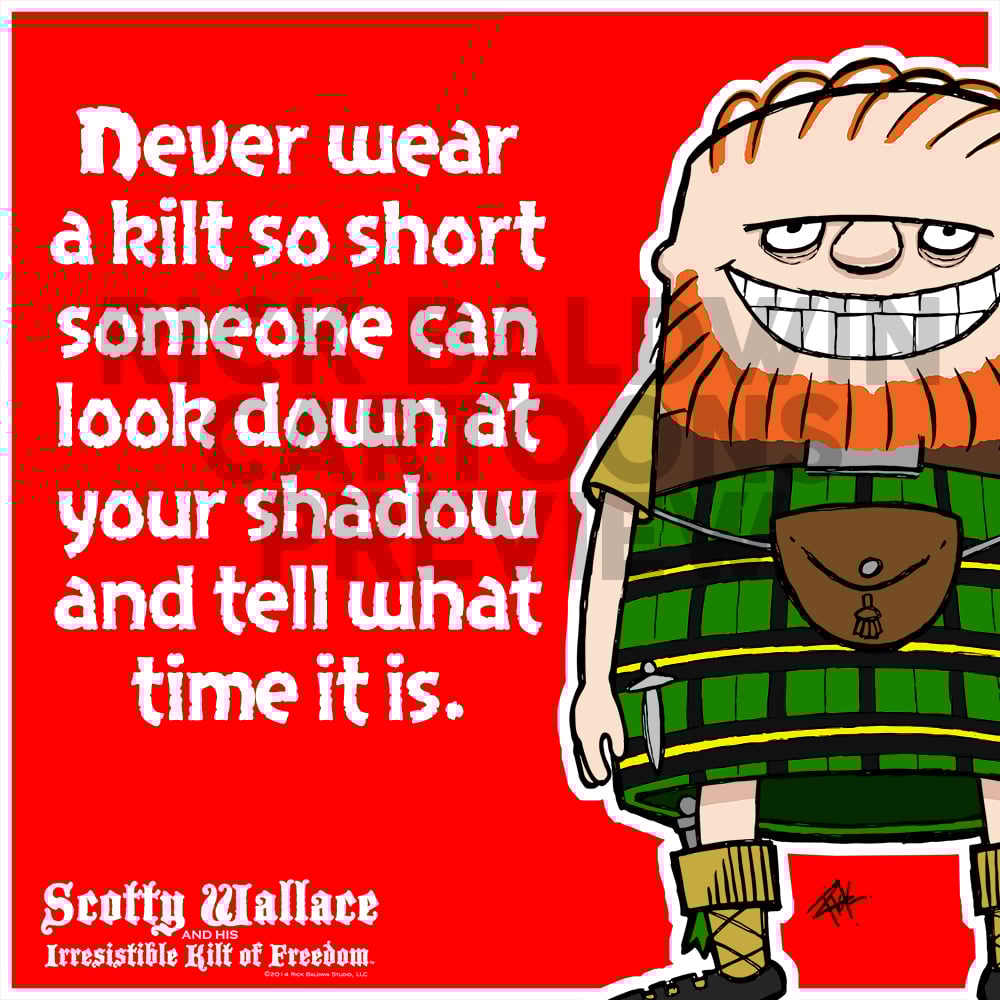 "Scotty Wallace and His Irresistible Kilt of Freedom" cartoon available for personal or business licensing.
