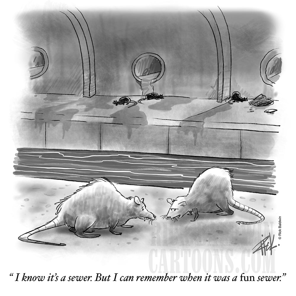 "Sewer" cartoon by Rick Baldwin. New Yorker-style gag cartoon strip.