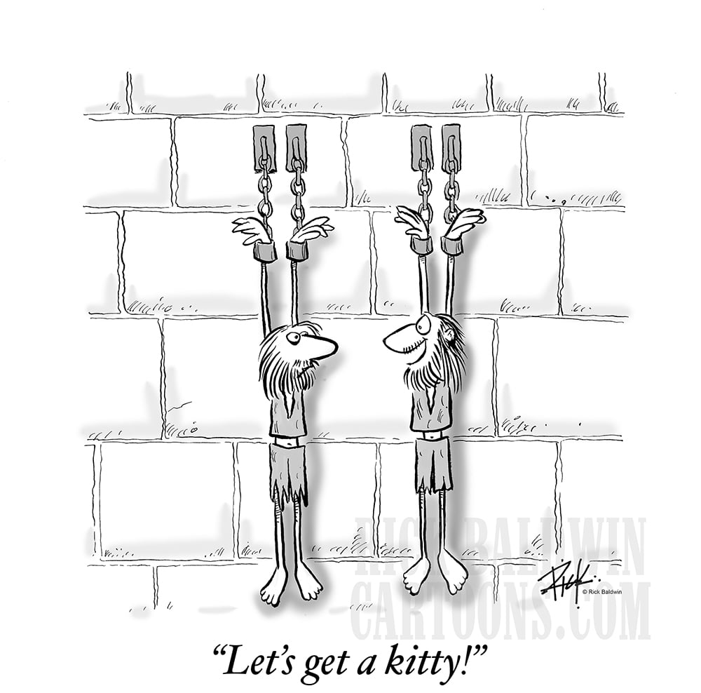 "Prisoners" cartoon by Rick Baldwin. New Yorker-style gag cartoon strip.